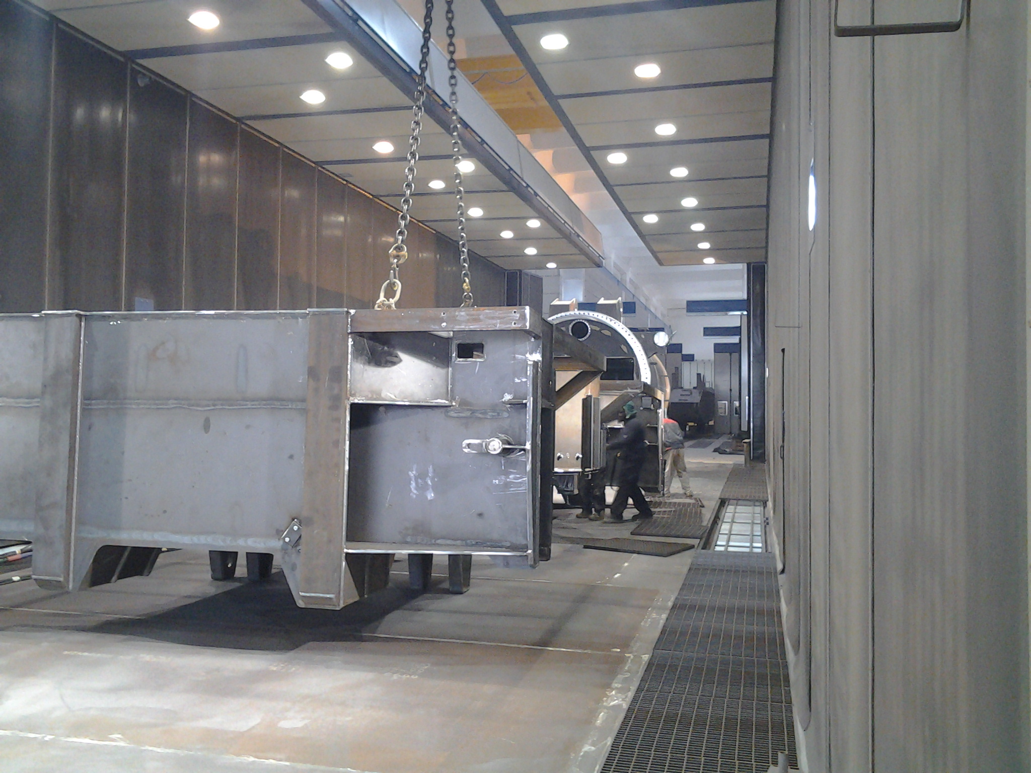 The parts are placed manually inside a closed, sealed enclosure, or with the help of an overhead crane or forklift, depending on their clearance.